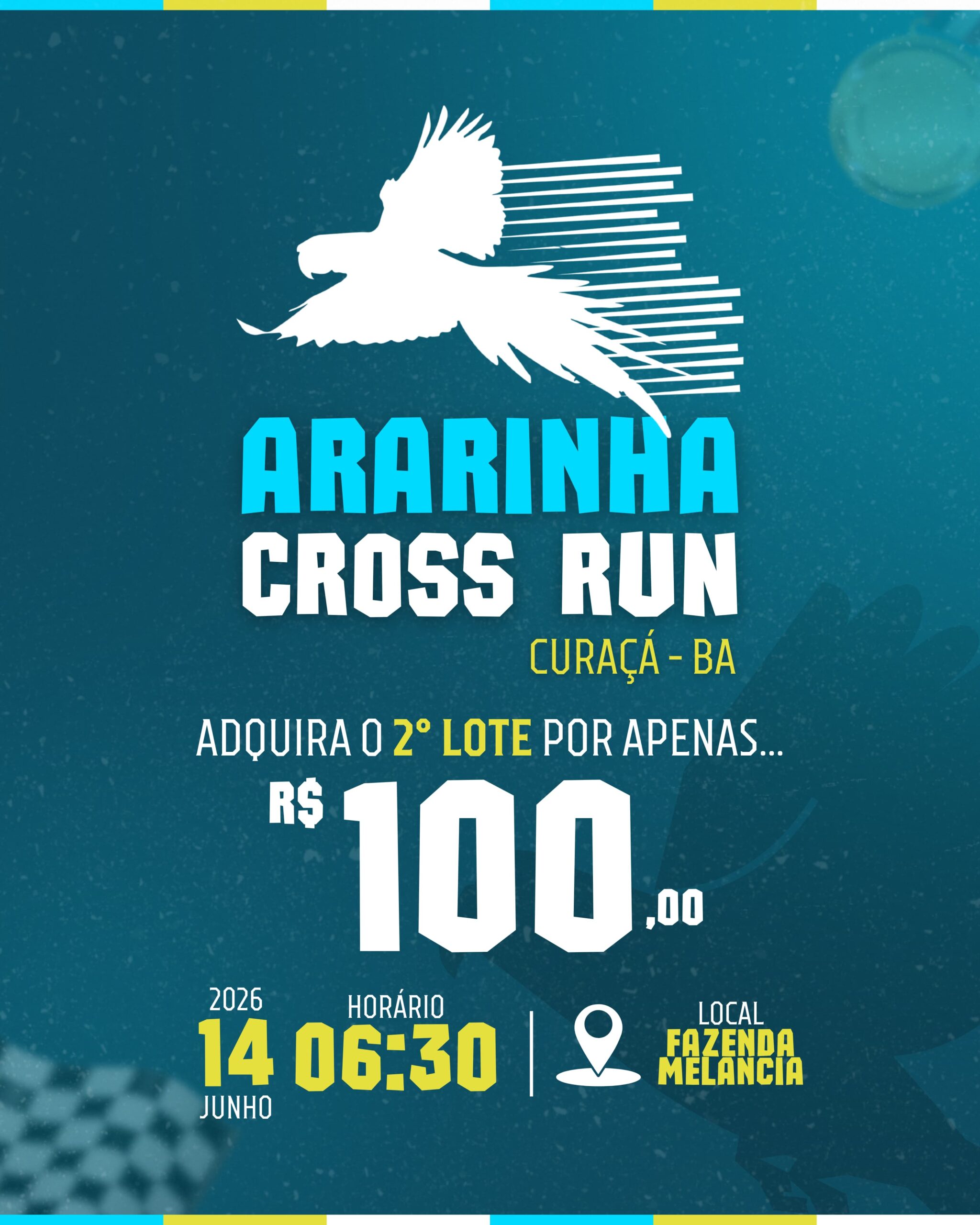 1.1 – A 8ª ARARINHA CROSS RUN doravante denominada EVENTO, realizar-se-á no dia 14 de JUNHO de 2026 (DOMINGO), com largada prevista para ás 06;30 horas, na Fazenda Melancia, Curaçá – Bahia, com participação de pessoas de ambos os sexos, devidamente inscritas, doravante denominadas de ATLETAS, sob qualquer condição climática. Faz parte deste EVENTO as CORRIDAS DE 10 KM, 5 KM e 01 KM